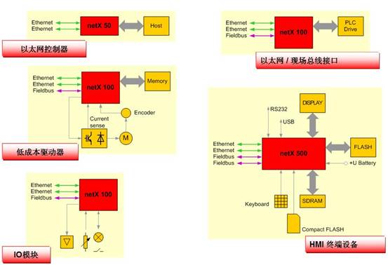 赫優訊netX系列芯片用途廣泛,從netX 50、netX 100到netX 500都有各自適用的領域: