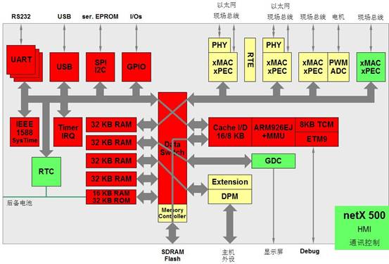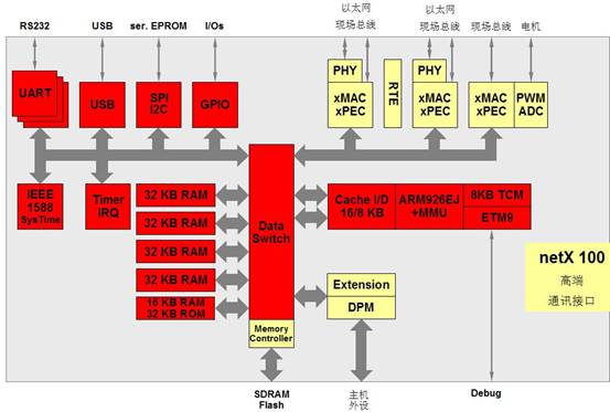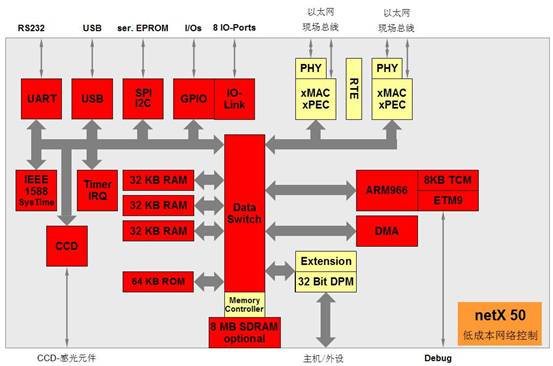 netX系列最新產品、低成本網絡控制芯片netX 50主要具備以下特點: