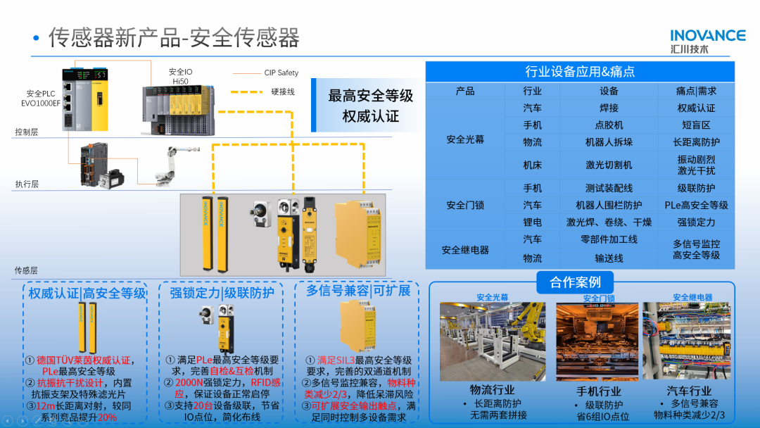 匯川技術傳感器業務負責人張凱介紹道:“我們不止提供單一傳感部件,而是從客戶產線設備的實際和未來場景出發,以‘兩提四節雙安全’為價值目標,結合匯川控制、驅動、執行、傳感全層級產品組合,通過架構與產品定義創新,為客戶痛點解決提供全鏈路價值支撐。”