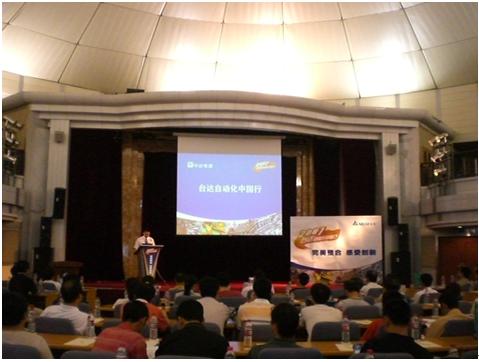 會議上,活動現場座無虛席,氣氛熱烈。臺達集團首先為來賓們介紹了近期推出的多款最新技術的新品。其中具有超強的網絡通訊功能的臺達SV系列PLC,具有高效率散熱設計、小型化、可并排安裝、內含PID回授控制的VFD-EL系列變頻器,VFD家族的第三代精品、內建的PLC功能的E系列變頻器和AS系列5.7人機界面等。