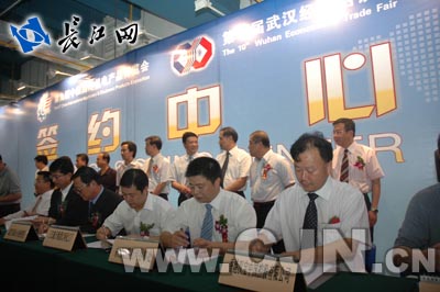 大會期間,有來自美國、日本、英國、法國、德國、荷蘭、香港和臺灣等多個國家和地區的外商,以及浙江、廣東、江蘇、上海等地的客商來漢洽談并成功簽約。今天共有30個項目參與簽約,包括進出口貿易合約、外商投資、中外合作、內資內聯等項目。其中:貿易合同10項,總金額6.8億美元;外資項目9項,總投資2.6億美元,協議外資2.1億美元;內資內聯項目10項,總投資37.2億元人民幣;中外合作辦學項目一項。