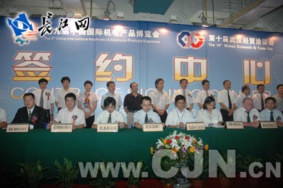 據長江網消息 9月23日下午,“第九屆中國國際機電產品博覽會、第十屆武漢經貿洽談會”投資項目簽約儀式在武漢國際會展中心舉行。參加今天簽約儀式的項目共有30個,包括進出口貿易合約、外商投資、中外合作、內資內聯等項目。