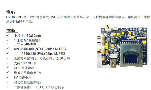 DVR6603G目前為了迎合市場對佩戴式、口袋式等便攜DVR的發展需求而最新升級了程序。為了匹配廣大用戶的應用需求,文件格式修正為標準的VGA格式;另外,增加新功能無限制錄像時間,每30分鐘存儲一段錄像,16GSD卡存儲,使用更加方便、簡單和快捷,使產品設計更加人性化。現該產品更加適合配備給檢測人員用于隨身檢測以及需要進行圖像記錄的簡單應用。