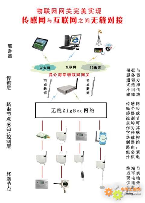 A 實現物聯網節點與互聯網IP直接的無縫信息傳遞; B 采用分散服務器模式方案,支持物聯網節點大規模群聚化應用; C 支持百千兆以太網、3G等各種互聯網信息通道,輕松實現通過互聯網IP對物聯網內節點
