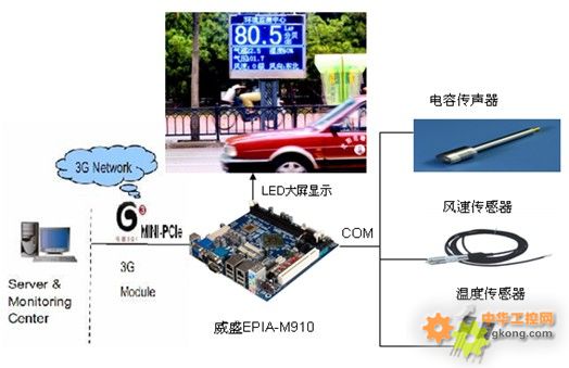 提起噪聲,大家不會陌生,常見的噪聲有交通噪聲,工業噪聲。早期城市噪聲的測量依靠人工測量的方式已不能滿足城市環境監控的需要。某公司采用威盛嵌入式主板 EPIA-M910 為計算機核心的遠程噪聲自動監測系統,可以對城市環境噪聲,交通噪聲,工業噪聲進行全天候的連續檢測和分析。遠程自動噪聲監測系統除了對噪聲進行監測,也同時對風速,溫度等氣象環境進行監測。監控終端采用電容傳聲器,并對聲信號進行 AD 轉換通過 RS232 接口傳送給 EPIA-M910 嵌入式主板為核心的工業計算機進行分析處理,顯示在 LED 顯示屏上,并通過 GPRS、 3G 和以太網的通訊方式將數據發送到環境監測中心。環境監測中心可對采集的噪聲數據和氣象環境數據進行分析,統計和報表處理。該套遠程噪聲自動監測系統可實現全天候,連續監測,測量精度高,可對事件進行錄音等特點,目前已在很多城市獲得推廣和使用。客戶選擇威盛 EPIA-M910 嵌入式主板的原因是 EPIA-M910 具有良好的穩定性支持全天候不間斷工作,采用威盛 Nano X2 E 系列雙核處理器和 VX900 芯片組,具有很強的處理性能和顯卡性能,另外 EPIA-M910 具有 2 LVDS, 8 COM, 8 USB, PCI ,1 PCIe 等豐富的外設接口便于系統的升級。目前該套遠程噪聲自動監測系統已在很多城市獲得推廣和應用。