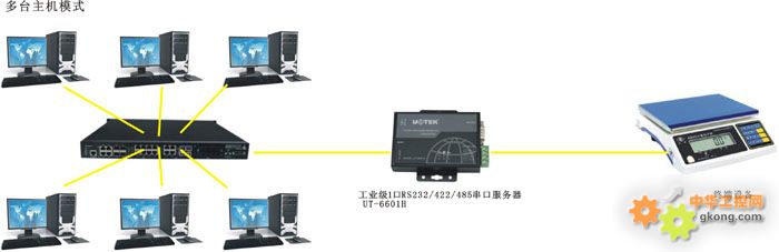 許多情況下多個(gè)用戶需要共享來(lái)自同一串口的數(shù)據(jù)資源,此時(shí)需要多臺(tái)主機(jī)能夠訪問(wèn)同一串口設(shè)備聯(lián)網(wǎng)服務(wù)器。UT-6601H能夠根據(jù)用戶的需求工作在這種工作模式,允許多臺(tái)主機(jī)分時(shí)訪問(wèn)同一串口。