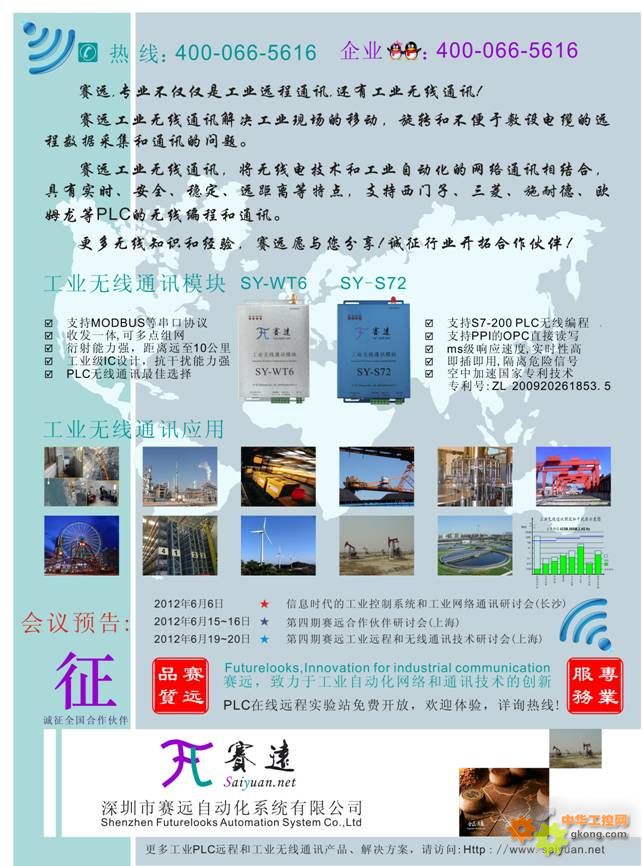 賽遠將在6月份于長沙舉辦信息時代的工業(yè)控制系統(tǒng)和工業(yè)網(wǎng)絡(luò)通訊研討會,于上海舉行第四期賽遠合作伙伴培訓(xùn)和工業(yè)通訊技術(shù)培訓(xùn),歡迎廣大客戶蒞臨現(xiàn)場了解和洽談合作。