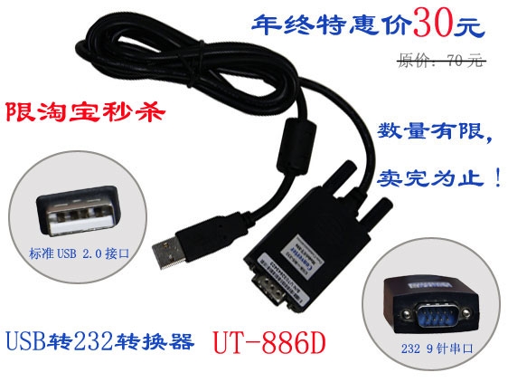 為答謝廣大新老客戶多年來對我司的支持,年終特惠供應回饋消費者從即日起,宇泰科技在官方淘寶店將各系列接口轉換器特惠供應,UT-886D USB轉RS232轉換器原價70元直降低至30元/條,另有其他型號可咨詢客服人員,數量有限,欲購從速,賣完為止!