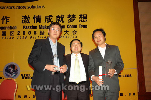 最后美國邦納總部副總裁BobSchlicksup先生與大中華區(qū)董事總經(jīng)理胡勇先生向2007年取的優(yōu)秀業(yè)績的經(jīng)銷商頒獎,現(xiàn)場氣氛達到高潮。與會者堅信通過邦納公司和各經(jīng)銷商們的強強聯(lián)合美國邦納在2008年將會以更先進、更優(yōu)異、更嶄新的姿態(tài)翱翔在中國自動化產(chǎn)業(yè)傳感器領(lǐng)域的天空。