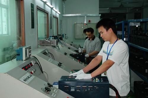 沿著一排排貼有“點點滴滴造就非凡”等催人奮進的理念宣傳品的柱子,我們來到了一間很特別的房間——老化房。張廠長向我們詳細介紹了老化房的功能、操作等細節。他強調,易能電氣的每一件產品出貨前都要經過嚴格測試和老化房的檢驗,以嚴把產品質量關。