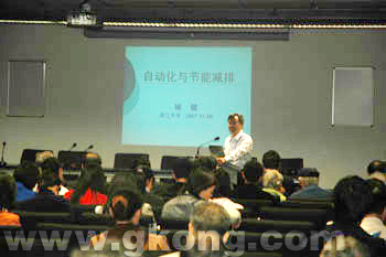 11月8日,2007中國國際工業博覽會自動化年會在上海新國際展覽中心E2館M19會議室隆重舉行。本次年會的議題為“面向節能環保的綠色自動化技術”。來自高校、業界專家以及知名企業代表上臺作了學術交流。浙江大學副校長褚健發表了《自動化與節能減排》的演講;英國工學博士、國際特許證工程師、東南大學客座教授何勤奮的演講題目是《綠色集裝箱RTG電氣控制新技術》;同濟大學博導、研究員、CIMS研究中心主任王堅和上海寶信軟件股份有限公司資深技術總監何浩然的演講題目分別為《高能耗企業能效綜合評估技術》和《面向節能降耗冶金工業MES》。這次年會吸引了眾多自動化領域資深專家和觀眾。