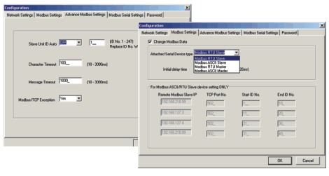 為了進行 Modbus協議的轉換,有必要定義從社別,但與其他Modbus網關不同的是, NPort 6110 允許用戶對以太網和串口來配置主從設備。額外的地址映射和以外的參數被用來確保所有的情況都能夠處理。