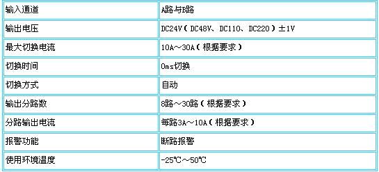 從外線引入不同的兩路DC24V電源至DCC-10A1直流24V切換分路器,如其中任意一路失電時(shí)能立即自動(dòng) 切換到另一路,DCC-10A1直流24V切換分路器上設(shè)有電壓表、電流表和各分路輸出指示燈。電流輸出都有獨(dú) 立過(guò)流保護(hù),LED指示,乒乓開關(guān)操作,每路都設(shè)有輸出報(bào)警。
