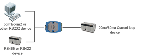 產品簡介 20ma電流環接口是工業界流行的一種串行數據通信方法,電流信號傳輸比電壓信號傳輸具有更好的抗干擾能力。尤其體現在工業現場的強抗干擾能力和噪聲抑制能力,尤其適合遠距離的串行通訊。廣泛的應用于稱重儀器儀表通訊、PLC、以及電表的數據采集。