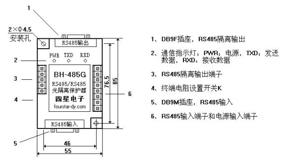 BH-485G是為解決通訊中的干擾和保護接口而設計RS485通訊口光隔離保護器,適用于任何標準的RS485通訊口,具有高速光電隔離、防靜電、抗雷擊和延長通訊距離、增加組網站點數量等功能。使用本產品將大大提高通訊系統特別是RS485網絡系統的抗干擾能力、可靠性和安全性能,徹底解決困擾廣大用戶的通訊口易損壞的問題。