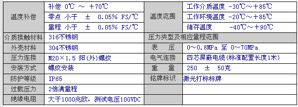 概述:PMM平面膜片型壓力傳感器/變送器特別適合對粘稠介質(zhì)(泥漿、煤漿、油漆、原油等)壓力的測量。它比原PM產(chǎn)品更具有體積小、重量輕、高精度、高可靠性和安裝方便的特點。壓力量程范圍從0~0.8MPa至0~70MPa,提供1%FS、0.5%FS、0.25%FS三種準(zhǔn)確度。壓力傳感器/變送器密封于不銹鋼殼體內(nèi),壓力連接接口可根據(jù)客戶要求定制。