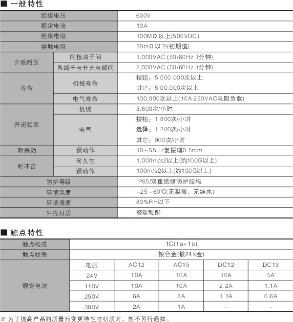 帶LED燈選擇開關(圓形2段)