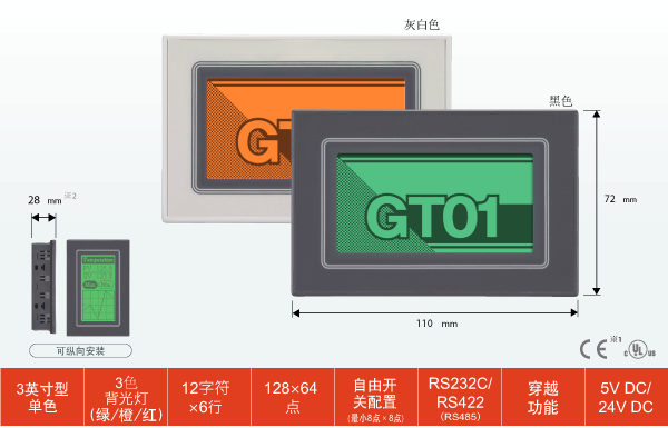 由于配置了TrueType字體,因此GT11最多能夠顯示216個字符(橫向24個字符,縱向9行)、GT01/GT01R最多能夠顯示72個字符(橫向12個字符,縱向6行),可供使用的畫面更大了。
