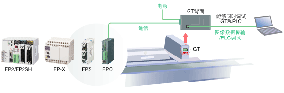 通過連接計算機和GT,可實現同時操作GT數據傳輸和PLC調試。