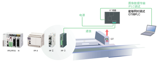 GT32T1的以太網(wǎng)功能可實(shí)現(xiàn)與遠(yuǎn)處的本公司PLC FP系列產(chǎn)品間的相互通訊。
