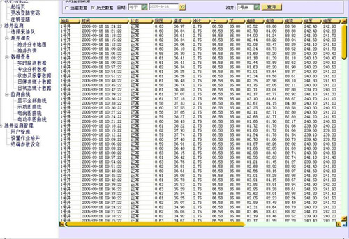 圖一 歷史記錄的數(shù)據(jù) 2. 準(zhǔn)確實(shí)時(shí)的對(duì)油井狀況診斷 WELL2000軟件系統(tǒng)不但具備采集現(xiàn)場(chǎng)傳感器數(shù)據(jù)的基礎(chǔ)功能,而且可以依據(jù)采集的各類型數(shù)據(jù),進(jìn)行組合判斷,對(duì)油井常見的異常問(wèn)題進(jìn)行專業(yè)診斷。提供準(zhǔn)確的油井狀態(tài)報(bào)告信息。例如:通過(guò)診斷,可以在第一時(shí)間提供抽油桿斷脫、三相電流不平衡、皮帶斷落等油井專業(yè)會(huì)診信息。