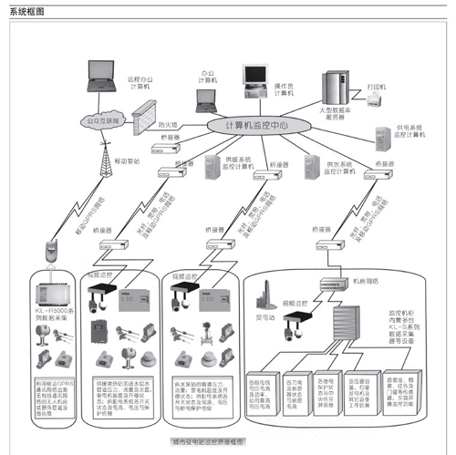 系統概述 對城市供水、供暖、供電的相關設備的運行狀態和運行環境實施監測,建成一套智能化的綜合管理系統,達到提高四大系統的可靠性,降低設備運行和維護成本的目的。通過監控中心對現場環境實現遙測、遙信、遙控、遙視(可選)等四遙功能,把險情隱患排除在萌芽狀態,從而使市政水電氣系統的綜合管理達到先進水平。