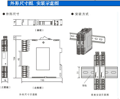 ● 環境溫度濕度限制 工作運行溫度 0~+60℃ 運輸儲藏溫度 -20~80℃ 相對濕度 5~95%RH ● 外形尺寸 寬(厚)×高×深=W16×H116×D110(mm) (見外形尺寸圖) ● 整機重量 約110g~120g ● 性能指標 標準精度: ±0.1%FS 溫度漂移: ±0.015%/℃ 響應時間: ≤1s(0 → 90%) 穩定時間: ≤3s 電源電壓變動影響: ±0.1%(允許電壓范圍) 負載電阻變化影響: ±0.1%/250Ω 通道隔離: 輸入-輸出-電源之間隔離 絕緣電阻: ≥100MΩ/500V DC(AC) 隔離能力: 1500VAC/1 分鐘 50Hz 負載能力: ≤500Ω (電流輸出4~20mA、0~20mA) ≥3KΩ (電壓輸出0~5V、0~10V) 最高防爆電壓: 250VAC 抗電磁兼容性: 符合 IEC 61000 相關抗電磁標準