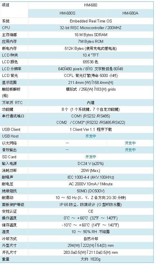 臺灣琦勝(CONCH)HM-680系列人機界面