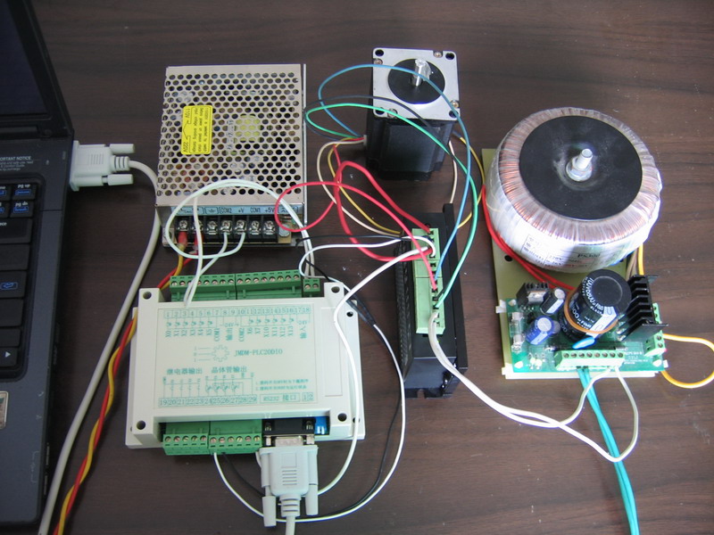 1:上位機(jī)(PC機(jī)或具有串口的其他控制設(shè)備)通過RS232串口連接到本控制器后,向控制器發(fā)送一串ASCII代碼指令既可控制步進(jìn)電機(jī)的轉(zhuǎn)向、轉(zhuǎn)速、步進(jìn)量,完全不需了解步進(jìn)電機(jī)及驅(qū)動(dòng)器的工作原理。例如:串口發(fā)送"SPR(100)",則步進(jìn)電機(jī)將順時(shí)針以每分鐘100轉(zhuǎn)的速度旋轉(zhuǎn),串口發(fā)送"SPL(300)",則步進(jìn)電機(jī)將逆時(shí)針以每分鐘300轉(zhuǎn)的速度旋轉(zhuǎn);串口發(fā)送"PULR(100)",則步進(jìn)電機(jī)將順時(shí)針步進(jìn)100個(gè)步距角,串口發(fā)送"PULL(1000)",則步進(jìn)電機(jī)將逆時(shí)針步進(jìn)1000個(gè)步距角。用于精密轉(zhuǎn)速控制、精密運(yùn)動(dòng)控制、精密機(jī)械加工等,控制精度極高,轉(zhuǎn)速誤差<0.01轉(zhuǎn)/分鐘。也可按要求定制更高精度控制板。提供VB軟件控制步進(jìn)電機(jī)的演示源代碼以及執(zhí)行程序。