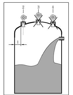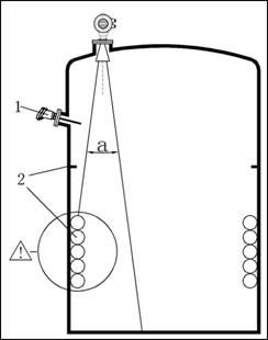 - 如果罐內(nèi)有(1)(2)干涉物件,應采用導波管進行測量。