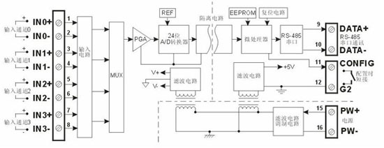 | 0-5 V電壓信號(hào)或4-20 mA電流信號(hào)輸入可選型,用戶可編程設(shè)置模塊地址、波特率。 |