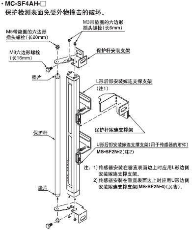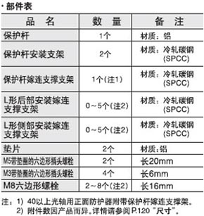 注: 1)套數(shù)視產(chǎn)品而定,詳情請參閱PDF.119“尺寸” 2)復(fù)合光軸傳感器需嫁連支撐支架(36光軸以上),不可用中心安裝架安裝于鋁制框架上。 |