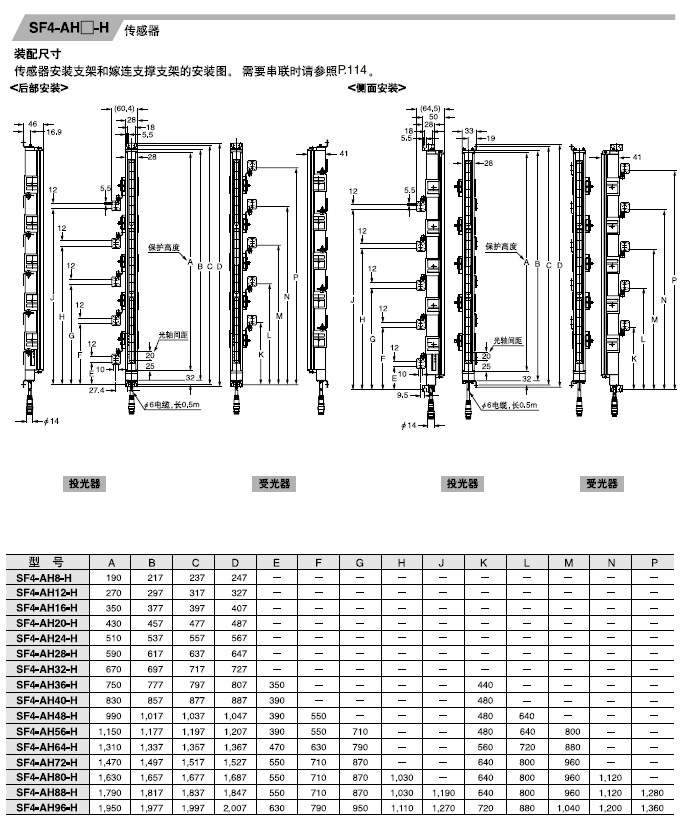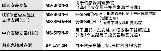 注:以上型號僅為單件而非成套部件。投光器/受光器都安裝需2個(2套)。 |