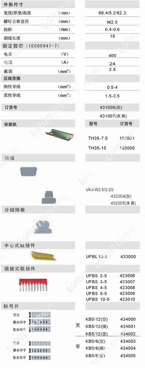 框式螺釘壓接端子UKJ-W2.5/2-2