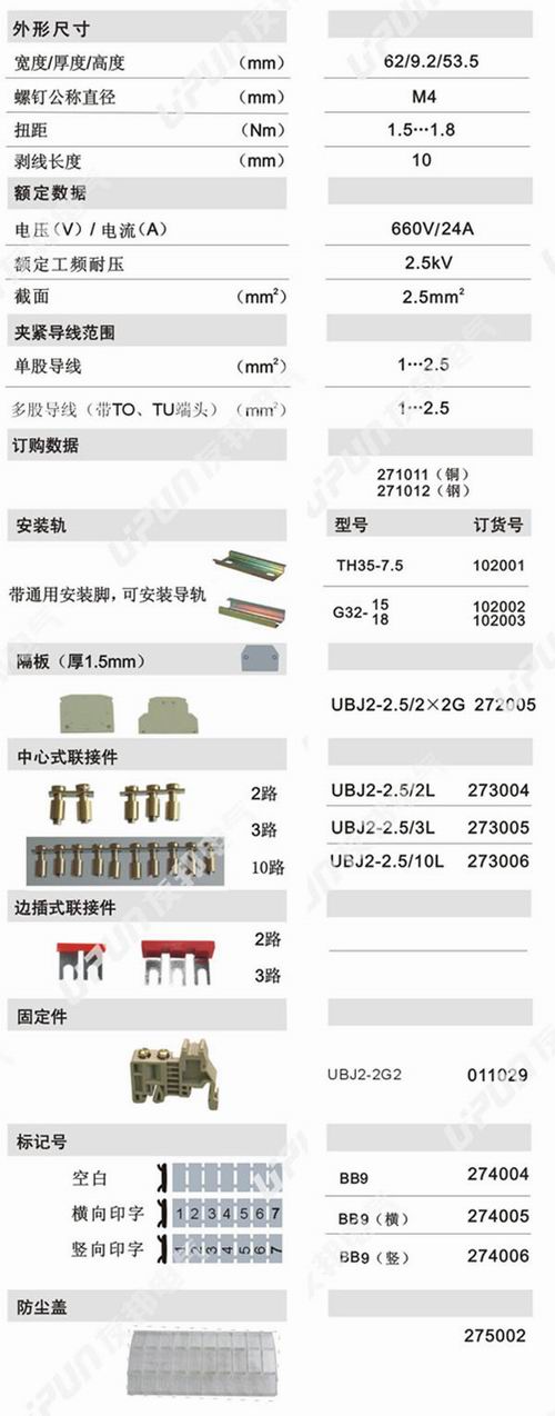 板式螺釘壓接端子 UBJ2-2.5/2X2