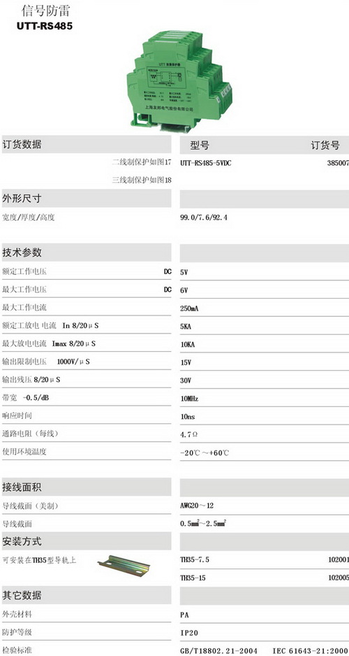UTT-RS485 信號防雷電涌保護器