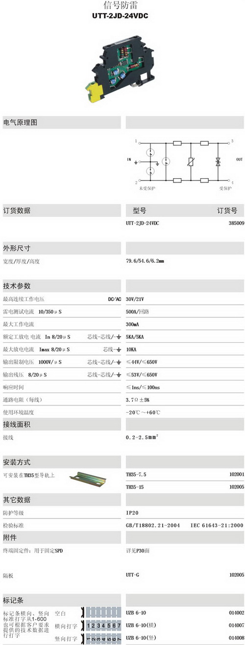 → UTT-2JD-24VDC 信號防雷電涌保護器