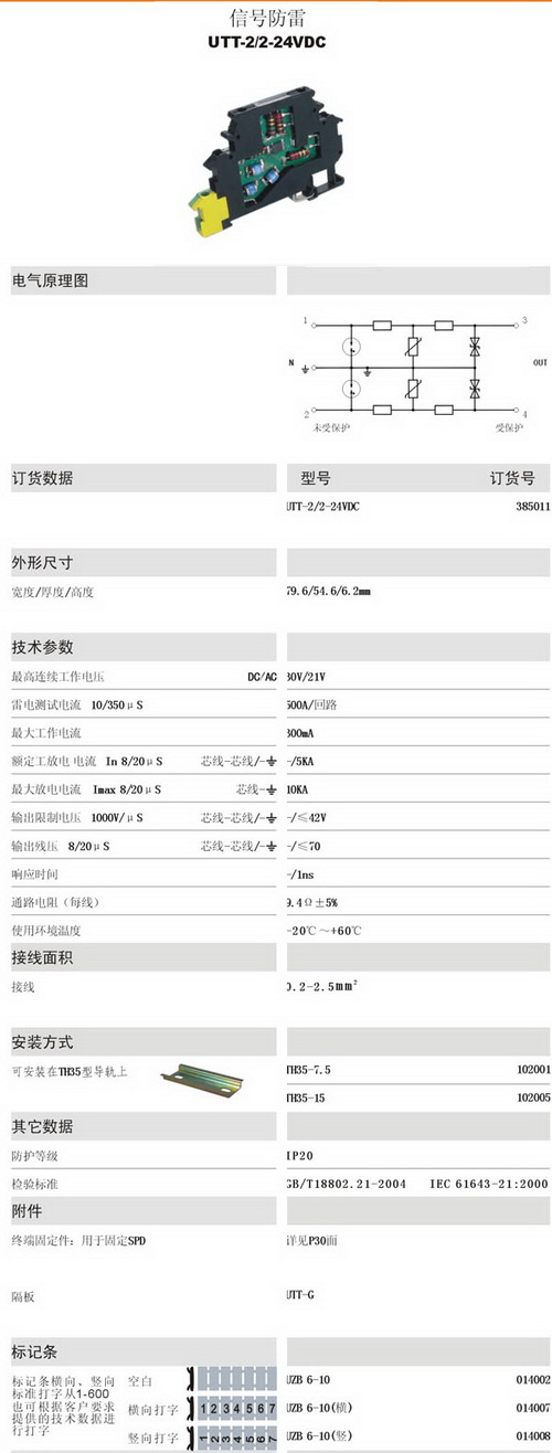 → UTT-2/2-24VDC 信號防雷電涌保護(hù)器