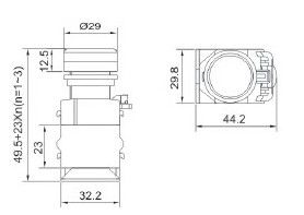 3.型號舉例:1常開+1常閉觸點,紅色一般鈕型號為:LA130-22D-11/R;
