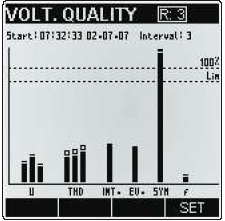 信 號:可選擇L1, L2, L3, TOT總和, 時間間隔:可選擇1秒-30分 顯示數據:時間間隔內的平均值、最小值和最大值 (對于所有四個象限)