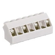 Screw terminal block, clamp with wire protector, 45° angle version, stringable without loss of pitch