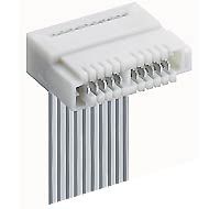 Connector for direct mating, insulation displacement technology (IDT), with locking on printed circuit board by means of locking hooks and toes, alternatively with or without keying rib instead of a contact spring (pre-nickeled and tinned), with closed sides