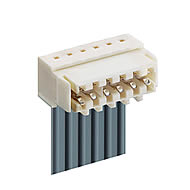 Connector for direct mating, insulation displacement technology (IDT), with locking on printed circuit board by means of lateral locking hooks, with keying rib, contact spacing 2.5 mm, for ribbon cable