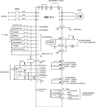 3:端子13,14不可以同時(shí)使用,同時(shí)使用時(shí)頻率指令為相加。