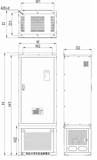 93kW及以上帶配電柜外形尺寸和安裝尺寸
