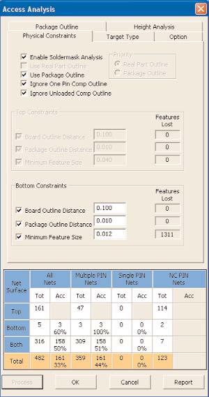 • 完整的通路分析、探針布置、板復雜性以及其它的報告