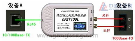 典型應用2:在圖3中,網絡設備A與網絡設備B都配有10/100Base-TX 接口,通過兩臺OPET100L1光纖收發器可實現網絡設備A與網絡設備B之間的遠距離互連。