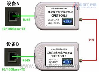 波仕電子的OPET100L是最新一代以太網光纖通信產品,直接從以太網口轉換出一對光纖收發頭(FC頭)進行遠程傳輸。波仕OPET100L微型以太網光纖收發器具有超小型的外形(74*23*47mm)、實現以太網的光纖傳輸、無須修改已有的軟件、無須驅動程序。OPET100L可以成對使用、也可以與其他符合100Base-TX標準的以太網光口通信。OPET100L1為單纖收發器,只用一根光纖收發,成對使用。由于采用光纖作為通信傳輸介質,具有隔離高電壓、防電磁干擾、傳輸距離遠等優點。