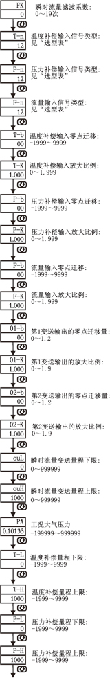 ②第一路流量信號(hào)輸入分度號(hào) ③第二路壓力補(bǔ)償輸入分度號(hào) ④第三路溫度補(bǔ)償輸入分度號(hào) |
