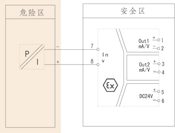 晶體管 | 型號舉例:NHR-A31-29-0/0 電壓輸入檢測端隔離柵,輸入信號為:1-5V,兩路輸出信號為:4-20mA。 |